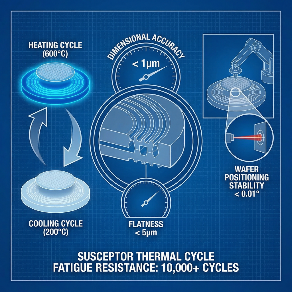 Tässä ympäristössä prosessivirhemarginaali on erittäin kapea. Suskeptorin suorituskyvyn heilahtelut vahvistetaan vaiheittain prosessin vaiheiden läpi, mikä on kiekon suorin fyysinen tuki: